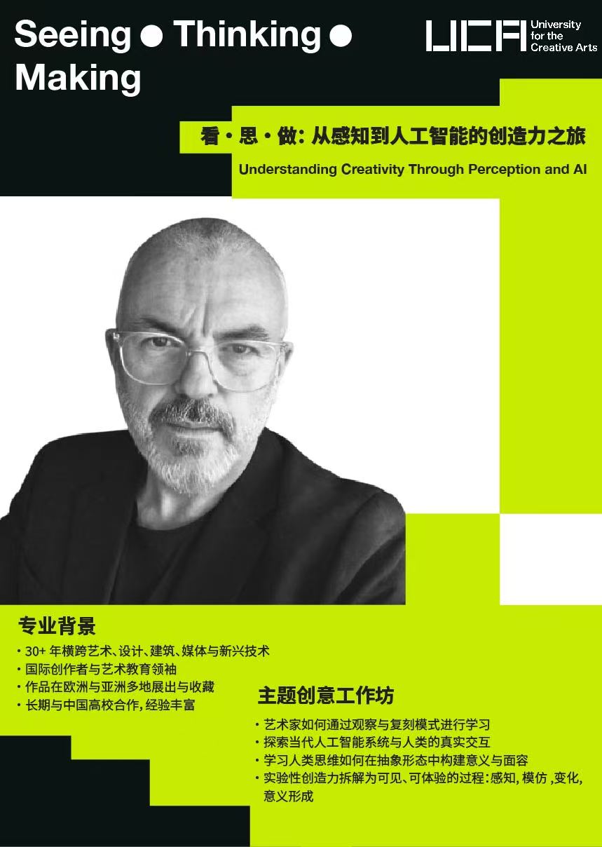 讲座上,Hedley Roberts教授以深厚的学术积淀与国际视野,深入阐释了AI技术在拓展艺术创作边界、激发创新动能方面的核心作用与发展趋势。卢峰老师随后补充了UCA在跨文化艺术教育中应用AI技术的系列实践案例,为在场师生提供了宝贵的国际经验借鉴。